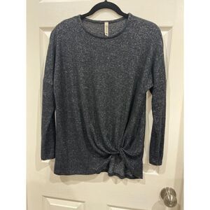 Pomelo Tween Shirt Top Women's Medium Gray Polyester Twisted Front Pullover