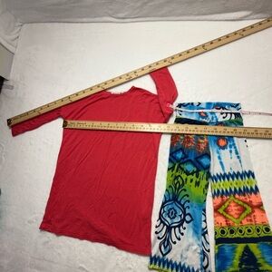 Colorful garment featuring a vibrant mix of peach, blue and green patterns. Perfect for adding a splash of color to any outfit. Great condition! Please see pictures for measurements.