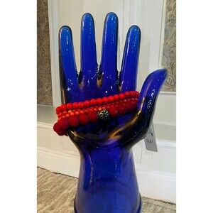 Pomina Semi-Precious Stones Red Bamboo Coral 4 Piece Stretchy Bracelets Boho