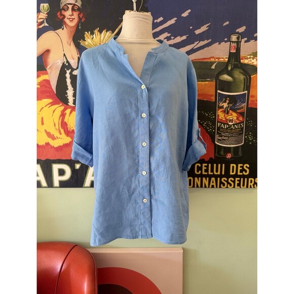 Excellent condition Pomodoro blue linen button down top. Size 12 Offers always welcome and considered!! Tote 44