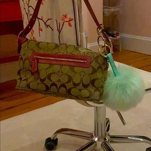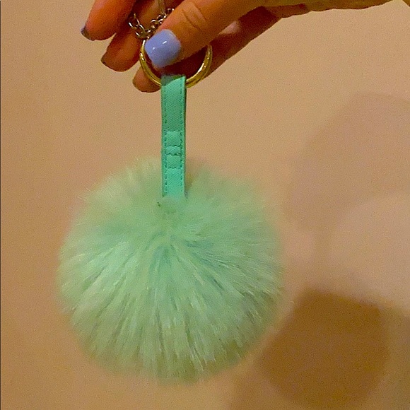 Super fluffy pompom that’s perfect for bags, keys, etc. Like new! Perfect light teal color!
