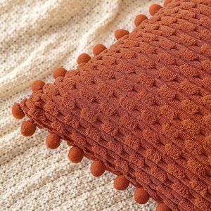 🌸EXQUISITE WORKMANSHIP: Lined with adorable pompoms, this pillow cover set is composed of a soft and comfy corduroy fabric that features a cute and elegant boho stripe design. Thick, ultra-soft fabric and tight seams ensure durability and usability. Great gift & fit for your living room, bedroom, patio, lawn, porch, balcony, couch or sofa.