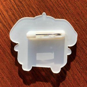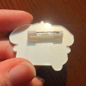 Adorable and brand new. Great for your button collection. The front has a plastic protective film you peel off after purschasing.