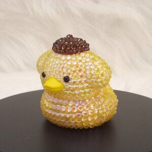 This adorable Pompompuirin Rubber Duck would be a perfect gift for any Hello Kitty fan. I applied Mermaid Drops to his body, and they look so cool! He'll sit perfectly on a dresser, night stand, desk, etc. I have placed all of the rhinestones personally. I will include extra stones (just in case) one falls off. I don't anticipate this but I want you to have replacement stones nevertheless. Just apply with superglue. 2.25 inches wide x 2 inches hig