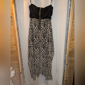 Pompous Girly High Low Strapless Dress Size 13 (juniors). EUC. Black and Leopard Print