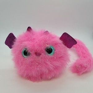 Pomsies Zoey Pink Dragon and Glitter Fluffy Interactive Light Up Plush Toy. This preloved dragon is fully functional, her eyes light up and change colors. She does show signs of play on her fur and eyes.