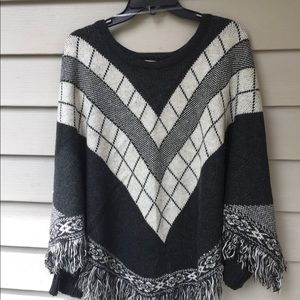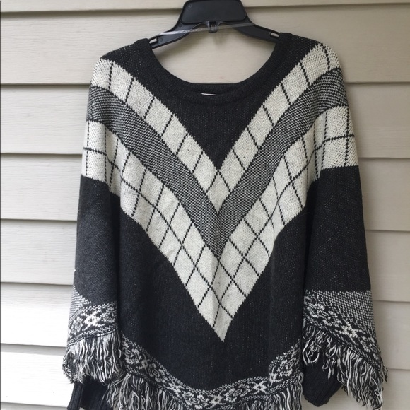 Trendy black and white knit poncho