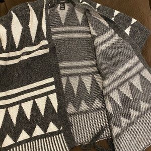 Gray and white fringe poncho. Wide open hole sleeve (see photo) open front. Only worn a few times, like new condition!