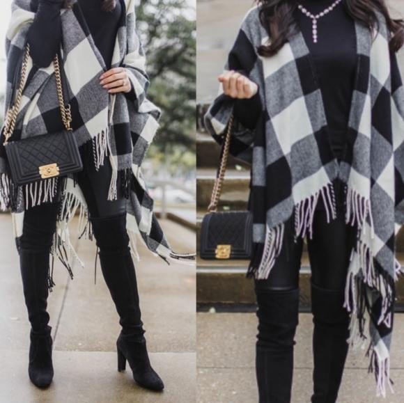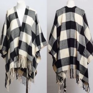 Description: Plaid poncho with tassels. Style it with rider boots, belt or just as shown in pictures above.