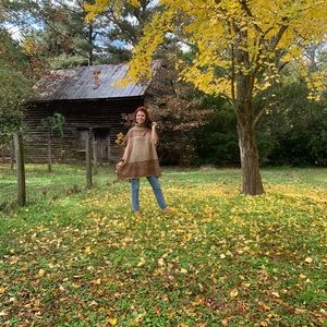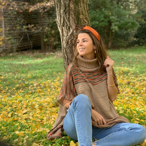 Light Brown with multi color detail knit poncho