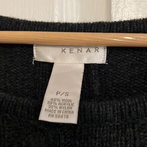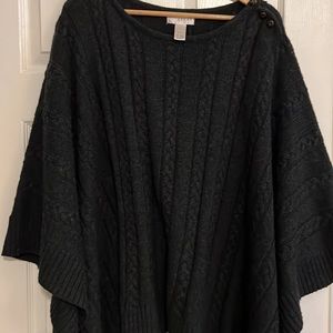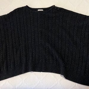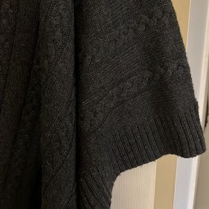 Cable knit poncho in charcoal gray .3 bottom detail on L shoulder