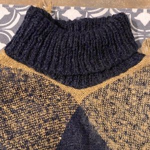 Navy blue, Gold & Red turtleneck poncho, size one size.