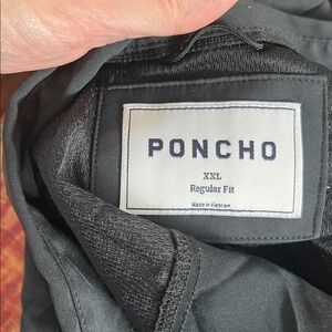 Stylish black button-up shirt by Poncho. Features front pockets and snap buttons.