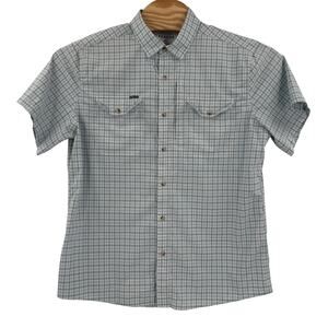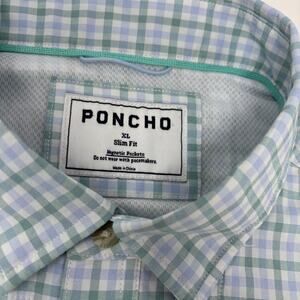 Poncho Mens XL Slim Fit Blue Green Check Short Sleeve Button Down Shirt