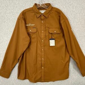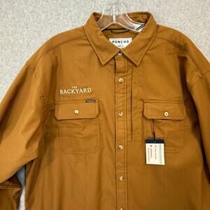 Poncho Long Sleeve Magnetic Pocket Shirt. Men's size Large Regular Fit. Please see actual measurements before purchasing. Great new with tags condition. No apparent flaws. COMPANY LOGO 'The Backyard' is on the chest and the word "HOAR" is embroidered on the sleeve. Still a super great quality item for layering or workwear. Please see photos for best description.