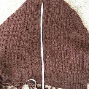 Poncho Sweater Soft Knit Brown Cowl Neck Fringe One Size