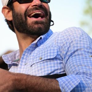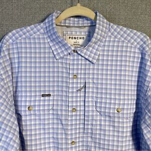 Poncho The Wahoo Large Men’s Blue White Check Performance Outdoor Fishing Shirt