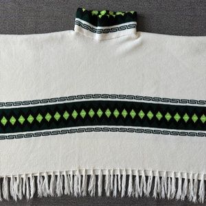Poncho Turtleneck Sweater Cape Greek Key & Diamond Pattern
