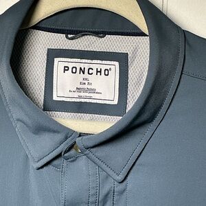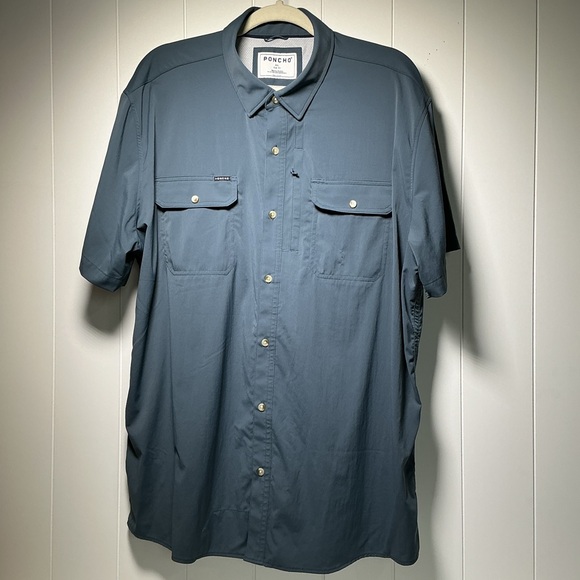 Poncho Vented Fishing Shirt Men's Size XXL Slim Fit Short Sleeve Button Up Blue