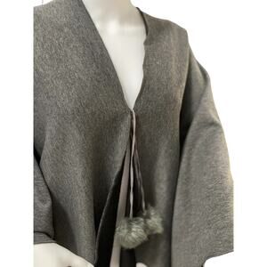 Poncho Wrap, NWOT, Grey Knit Black Fleece, Marc New York, Furball Tie