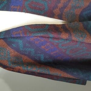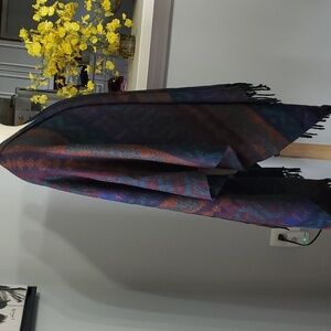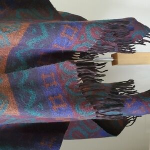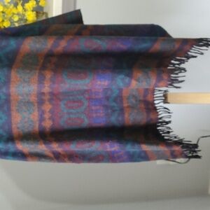 This lovely super soft fabric is blue, purple deep red design. About 50" X 62". Good used condition and quality. It's not marked Cashmere however I believe that it is either Cashmere or Merino wool. Consider making a bundle and get an even better offer.