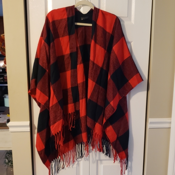 Very soft, never worn, Buffalo plaid wrap/poncho. One size.