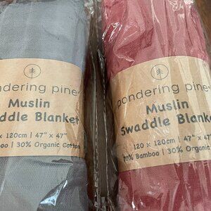 Pondering Pine Muslin Swaddle Blankets Set of 2 Red & Gray 47" x 47" Bamboo!