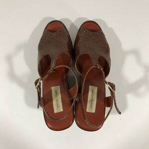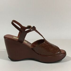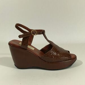 Pons Quintana Brn Woven T-Strap Peep-Toe Platforms