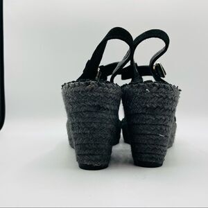 These cute wedges are in excellent pre-owned condition. They have barely been worn, if at all. The upper is soft suede and the closure buckled around the ankle. The straw around the wedge heel is also black, which you don’t see often. They also seem like they’re super comfortable and will go with everything! They’re the perfect summer shoes!
