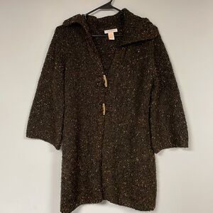 Ponsesa Cardigan Women’s M Knit Toggle Boho Hippie Long multi- color Brown