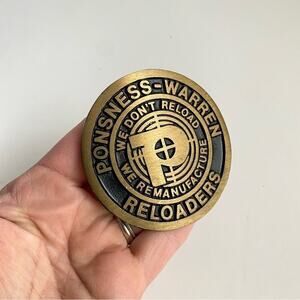 Ponsness Warren Reloaders Vintage Round Brass Belt Buckle Western Patriot Mens