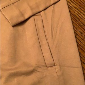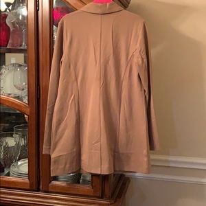 Long, slim and unlined, this ponte knit blazer is easy to wear to work or play. The blazer falls just past my hips and would be really cute with a tunic and leggings. Camel is a great fall color or professional color for year round wear. Not a heavy blazer, this will give you just the polish and comfort you need for those zoom calls.