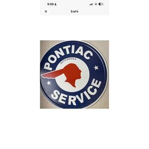 Pontiac Service Tin Metal Sign Chief Emblem Auto Shop Car Garage Vintage