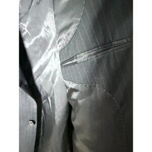 The Ponto Uomo Charcoal Gray Pinstripe 100% Wool Mens Suit Jacket Blazer in size 54R is a stylish and sophisticated one-piece garment perfect for business occasions. Made from high-quality wool with a tweed fabric type, this jacket features a four-button sleeve style and a two-button front closure. It also includes inner pockets for added functionality. The classic pinstripe pattern and gray color make it a versatile piece that can be worn throughout the seasons. Designed by Ponto Uomo, this suit jacket offers a regular fit for a comfortable and tailored look.
