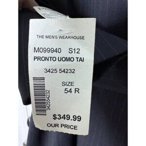 Ponto Uomo Charcoal Gray Pinstripe 100% Wool Mens Suit Jacket Blazer 54R NWT