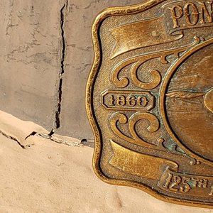 This beautiful bronze buckle is a commemoration of the 125th anniversary of the Pony Express
