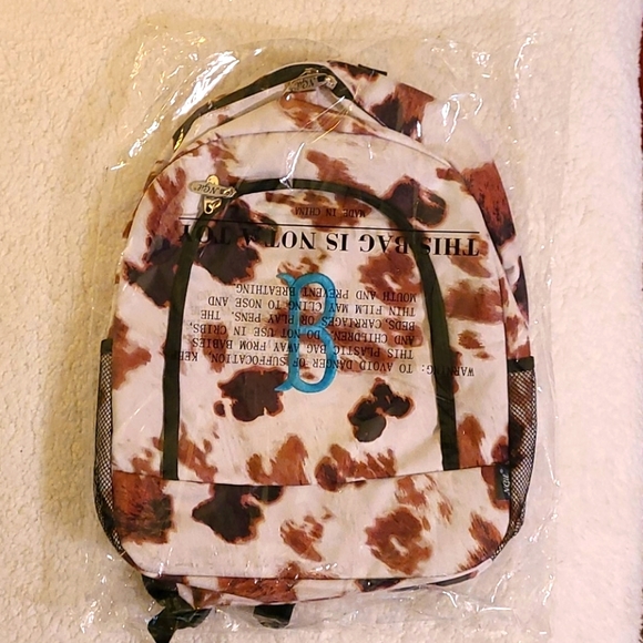 This sweet backpack has a cute brown/tan and black pony print with the initial B monogrammed in turquoise on the front pocket. The backpack is brand new and is sure to make someone very happy! School is on the way soon or use it however you want!