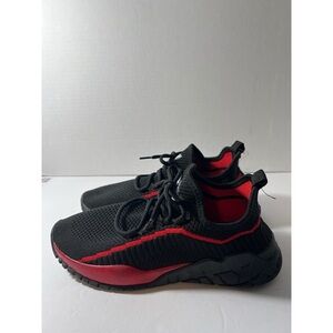 Stylish and comfortable kids' athletic shoes in black and red. Perfect for active play and everyday wear.looks new
