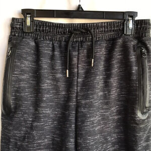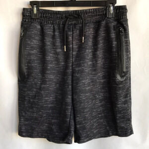 Pony men’s black / white heather drawstring shorts with front zipper pockets, S