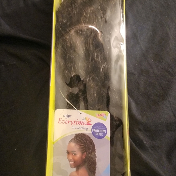 Drawstring ponytail. Wavy curls. Black with brown highlights. Never worn.