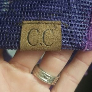 Turquoise and purple sequence. Reversible. Pony tail hat. Velcro adjustable for size.