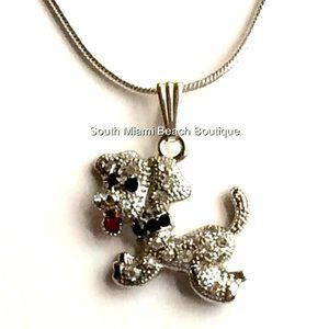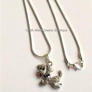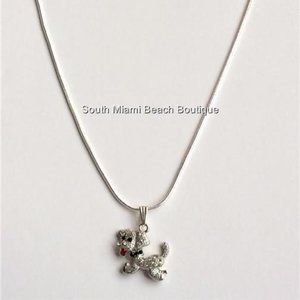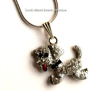Poodle Dog Necklace Silver Plated Crystal Puppy Rescue Dog Mom Gift