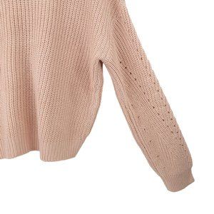 Poof Apparel Light Pink 3 Button Knit V Neck Cardigan Womens M Long Sleeve NEW
