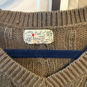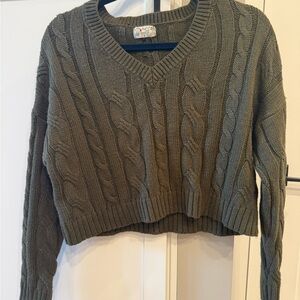 Poof Apparel Olive Cable Knit V-Neck Sweater