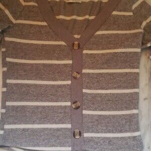 Poof Apparel Striped Buttoned Cropped Cardigan sized Large