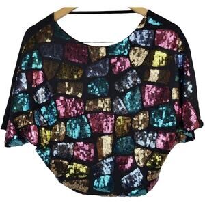 Poof Couture Cropped Multi Color Sequin Blouse Size S