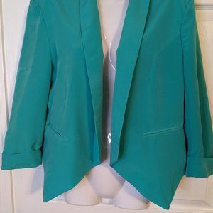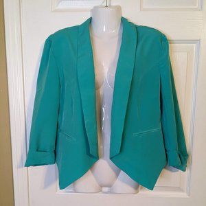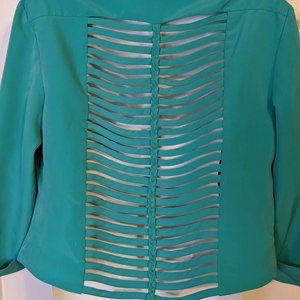 Poof Couture Spring Green Open Front Ladder Cut Out Back Blazer - size L