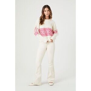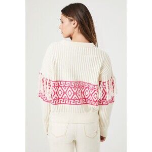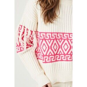 Poof Cuddly Geometric Fringe-Trim Sweater Cozy Chic Retro Twee Indie SZ L:NWT