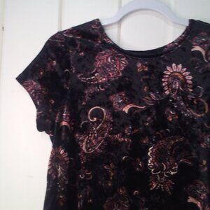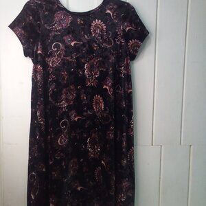 Poof Dress Women M Short Sleeve Velvet Paisley Pattern Black Pink
