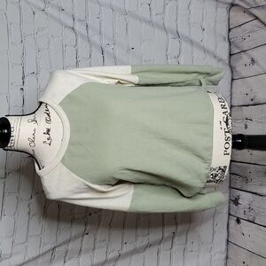 Poof Fuzzy Sweater Green/Cream NWT Size Medium